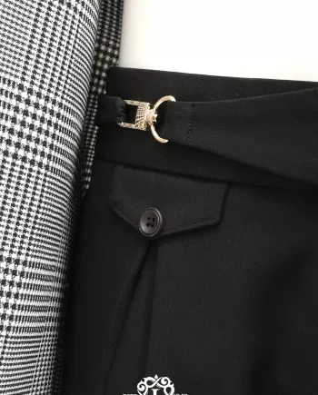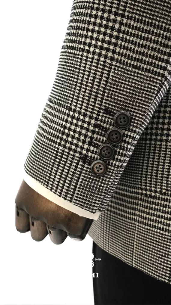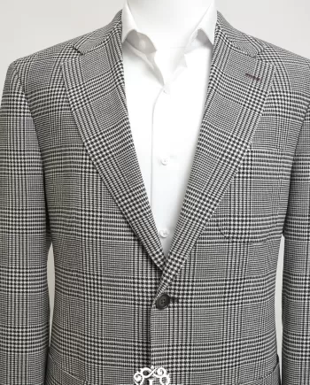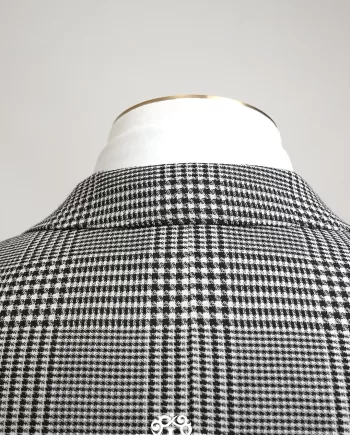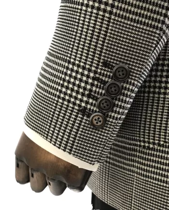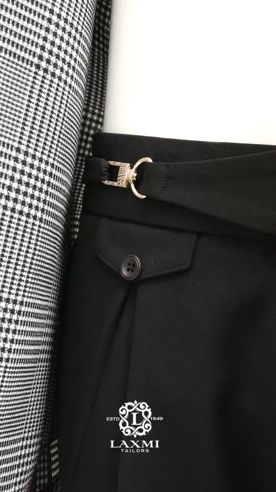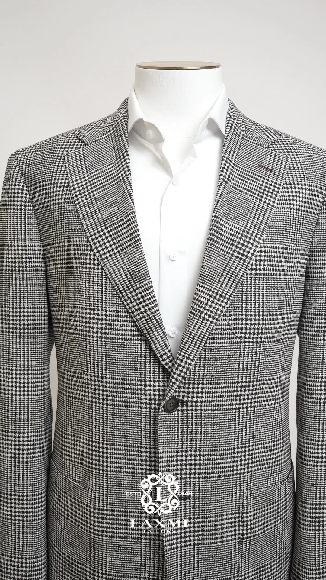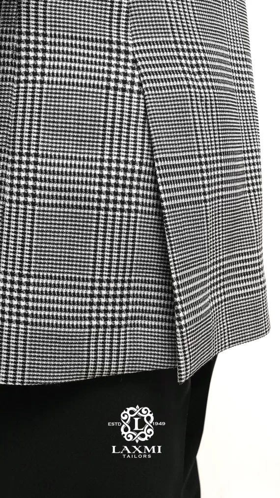 The Laxmi Tailors Grey Prince of Wales Check Suit is a timeless classic in modern tailoring. Crafted from 100% premium wool, this slim fit suit features a refined Prince of Wales check pattern with sharp peak lapels for a confident, distinguished look. The double vent construction allows ease of movement while maintaining a clean silhouette. Perfect for business meetings, weddings, or formal occasions, this versatile suit can be styled with a crisp white shirt for a sophisticated appearance or paired with a turtleneck for a contemporary edge.